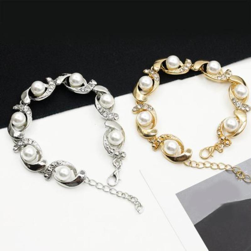 Women Faux Pearl Rhinestone Inlaid Charm Bracelet Bangle Adjustable Jewelry Gift