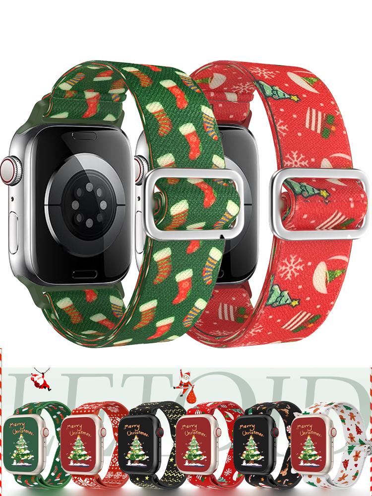 Christmas Strap for Apple Watch Band 46/42mm 45/41mm 44/40mm 49mm Elastic Nylon Bracelet Correa iWatch Series 11/10/9/8/SE/Ultra