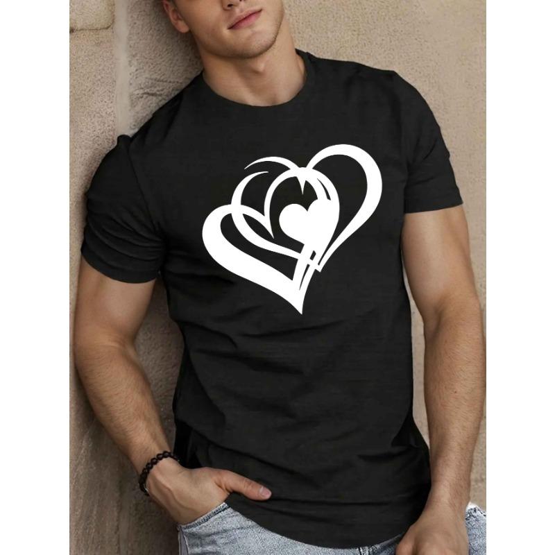 European Sizes Elegant Double Heart Men's Short Sleeve T-shirt Summer T-shirt Top