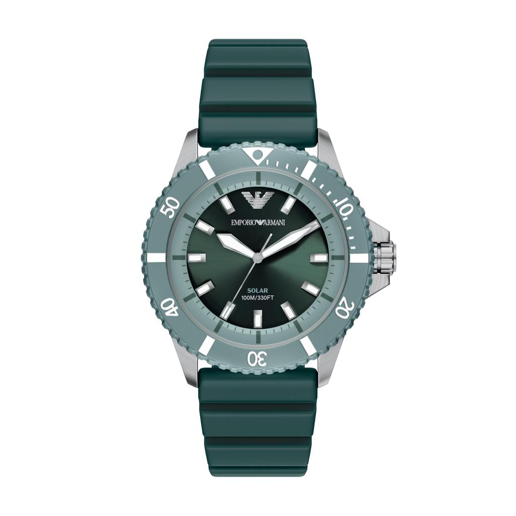 Watchband: The durable green silicone band is easily adjustable for a perfect fit.