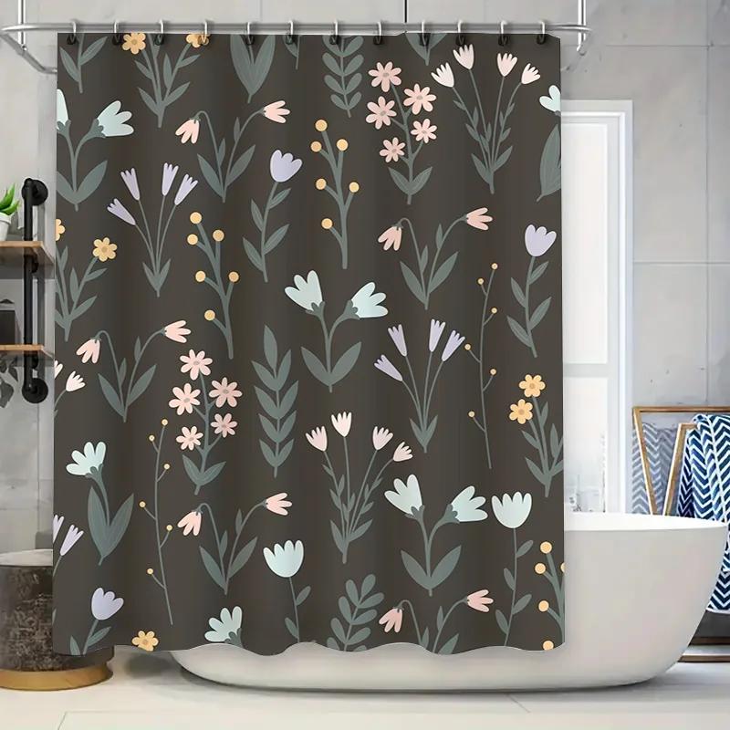 Modern Style Printed Shower Curtain Waterproof Bathroom Decor with Flowers and Leaves Design