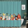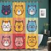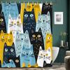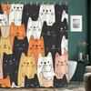 Cartoon Cat Shower Curtain Black and White Line Cat Colourful Footprints Polyester Fabric Home Shower Curtains Bathroom Decor