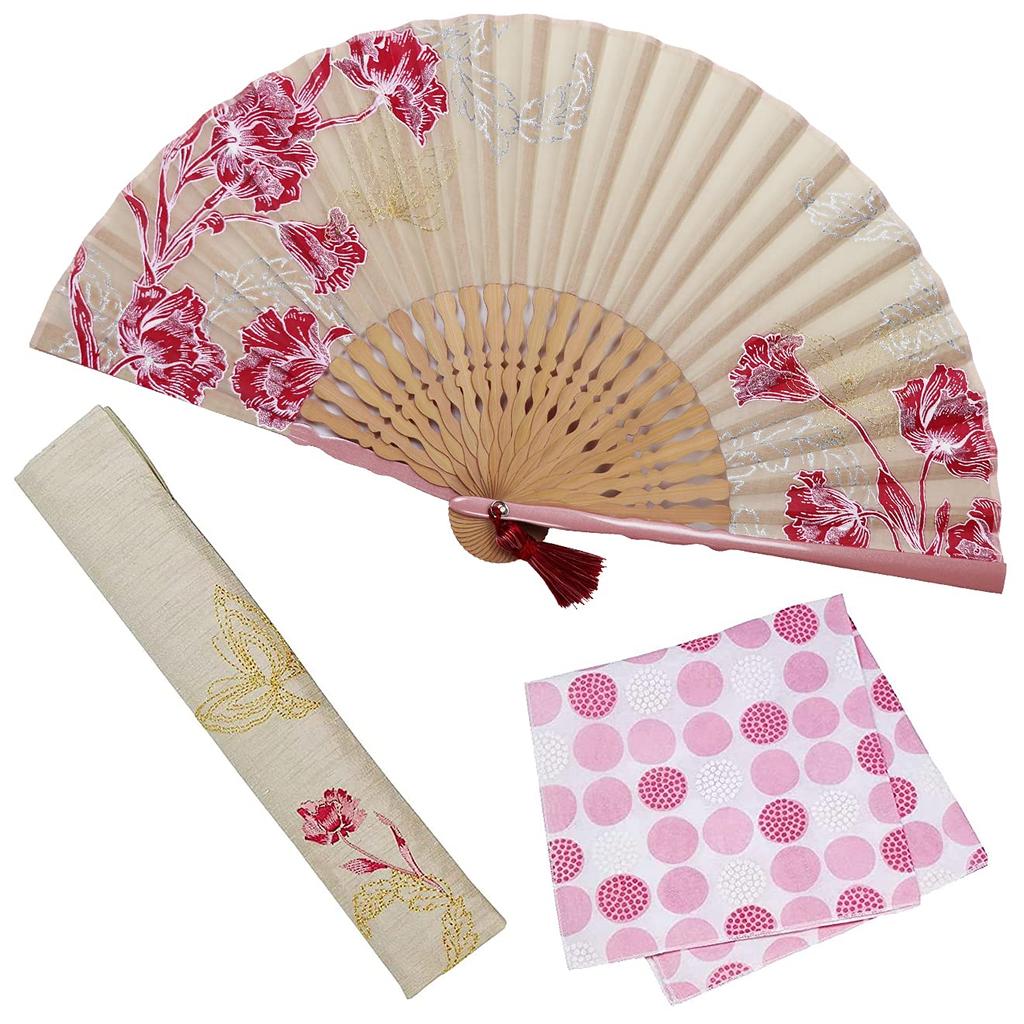 Stylish Business Fan Set with Fan Case and Handkerchief Bouquet Beige [Osaka Choseido] Women's -