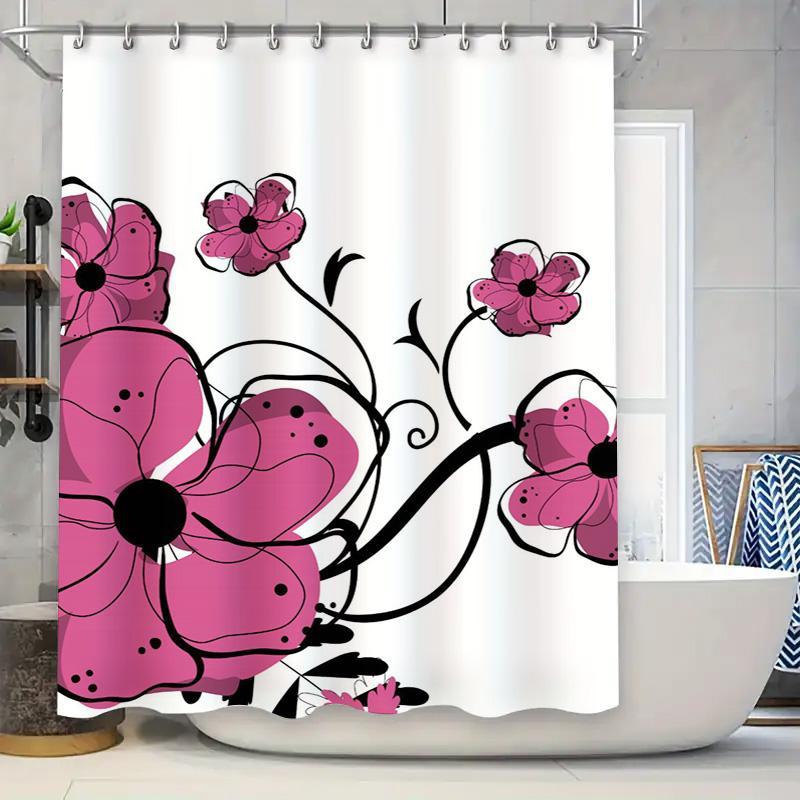 Charming Pink Floral Printed Shower Curtain for Bathroom Decoration Waterproof Fabric Decorative Home Accessories