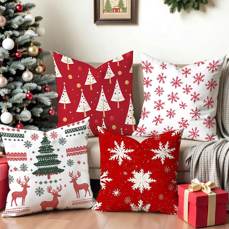 Christmas Tree Deer Snowflake Pattern Pillows Square Polyester Pillowcase, Modern Sofa Decorative Cushion Cover