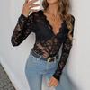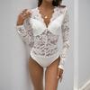 Women's Elegant Solid Color Long Sleeve Lace Sexy Bodysuit, Popular European & American Style Jumpsuit for Spring Autumn