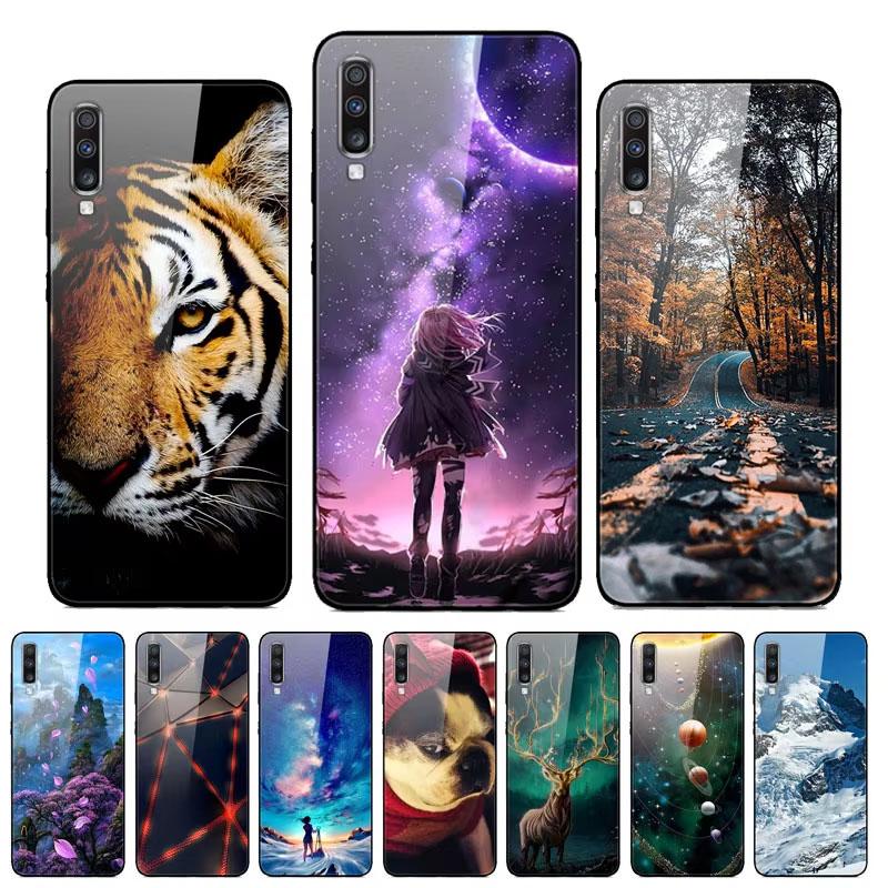 For Samsung A70 Case Cute Pattern Tempered Glass Back Hard Cover Case For Samsung Galaxy A70 Phone Cases Coque A70S A 70 Fundas