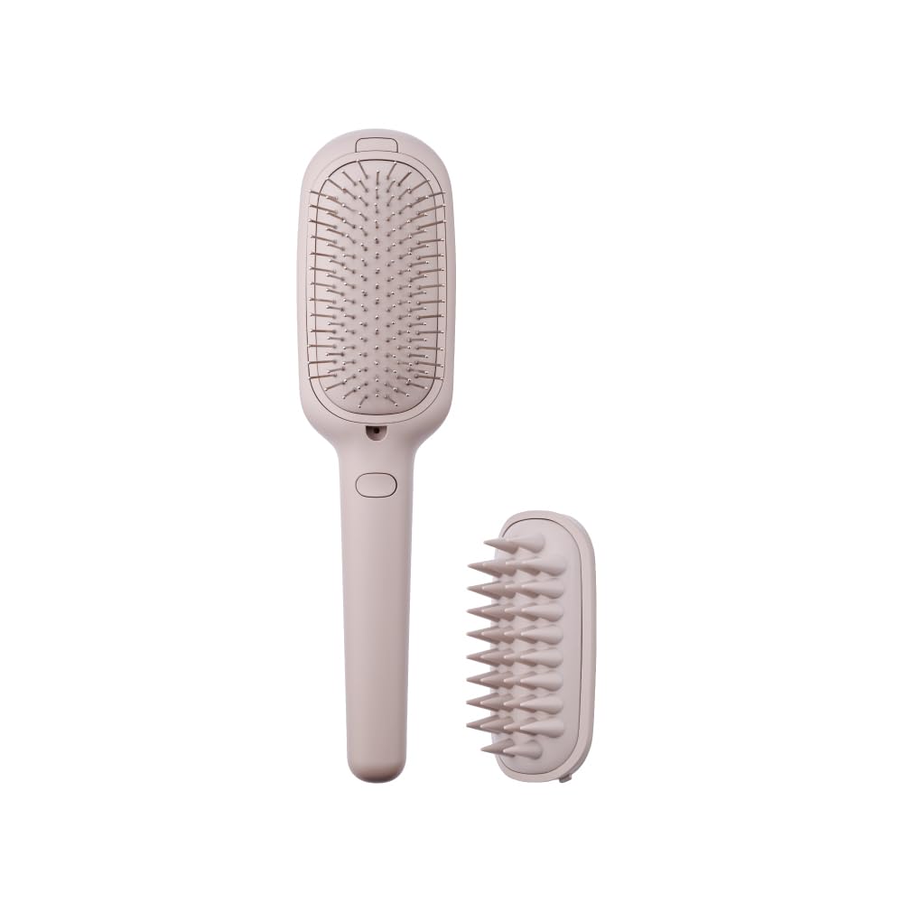 Recommended for gently detangling fine, soft hair or permed hair that tends to tangle. A light brushing motion easily creates a textured style. • Negative ions improve hair manageability. Emits negative ions to suppress dryness and static electricity. Simply brushing leaves hair smooth and shiny. • Sonic vibrations detangle. Press and hold for "power on" and "low vibration," double-press for "high vibration," allowing you to choose your preferred intensity. The sonic vibrations produce approximately 7,000 micro-vibrations per minute. Simply apply it to your scalp for a comfortable stimulation while gently detangling your hair. Features an automatic shut-off function after approximately 5 minutes to prevent accidental power-on. • Detachable attachment for easy cleaning. The detachable brush head is washable for hygiene. • Battery-operated for use anywhere. Requires 2 AAA alkaline batteries (not included). • Perfect for gifts. A special gift that embodies beauty. A paddle-type hairbrush that is easy for anyone to use, regardless of age or gender. With its timeless and simple design, it's perfect as a gift.