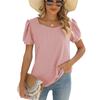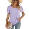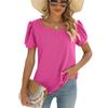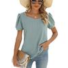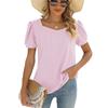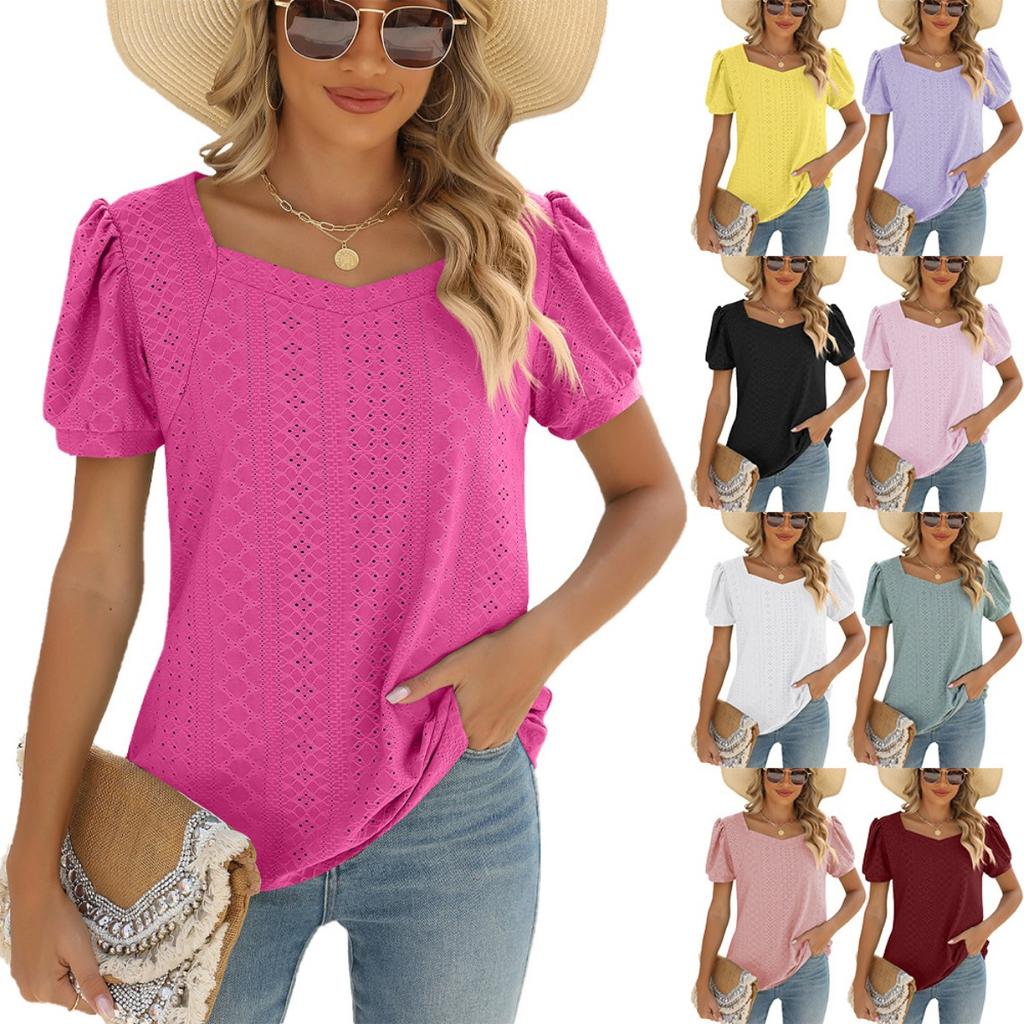 Spring Summer New Women's Solid Color Square Neck Puff Short Sleeve T-shirt Loose Casual Top For European American Cross-border