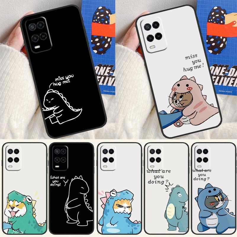 Couple Matching Cute Dinosaur Case For Oppo A16 A76 A96 A58 A78 A98 A5 A9 A91 A15 A17 A77 A52 A72 A74 A94 A54S A57S Cover