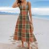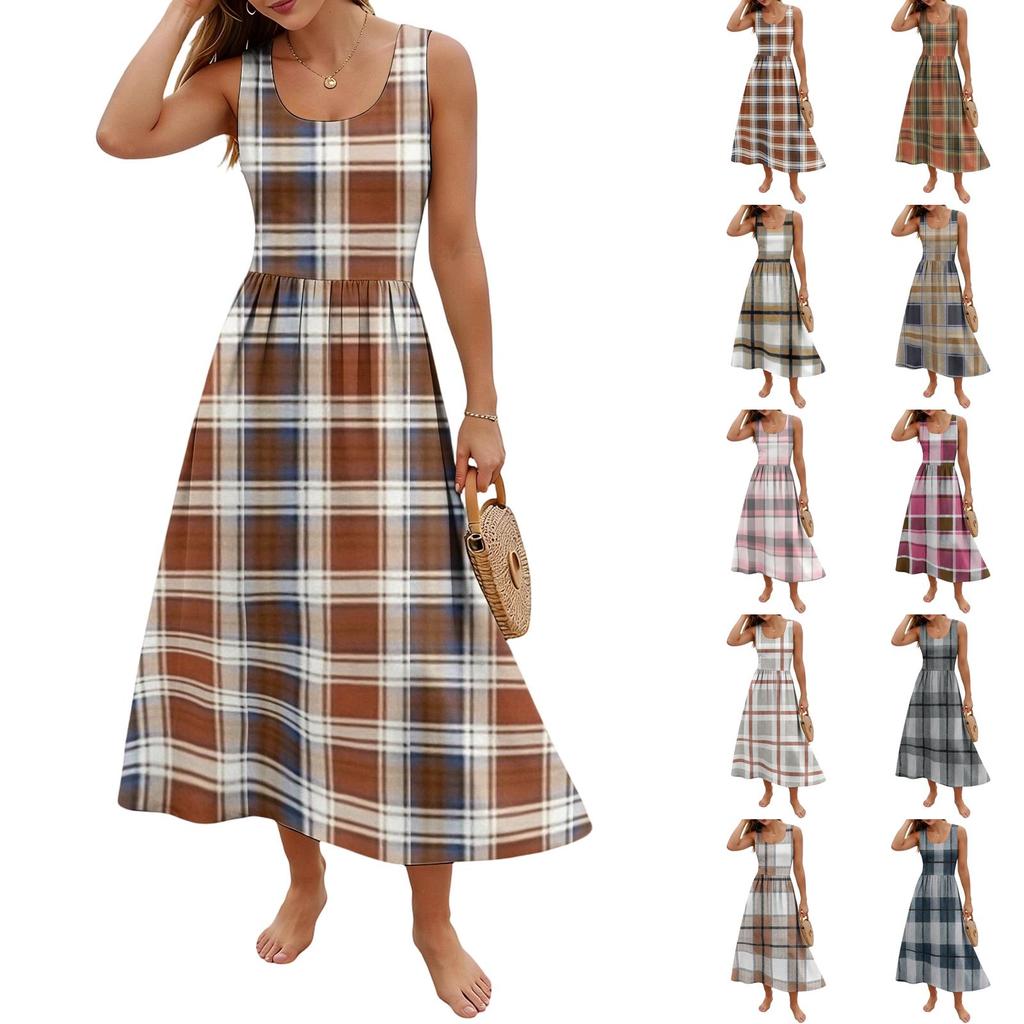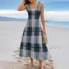 Ladies' Checkered Summer Casual and Fashionable Sleeveless Long Dress