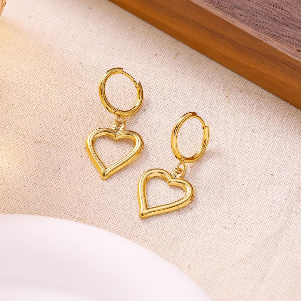 Elegant Smooth Line Heart Stud Earrings for Women - Stainless Steel Pendant Jewelry