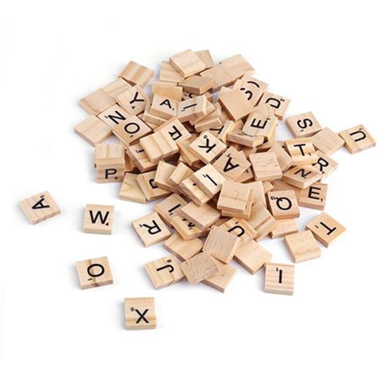 100 Pcs Wooden Alphabet Tiles English Letters DIY Wood Crafts Kids Toy 18x20mm