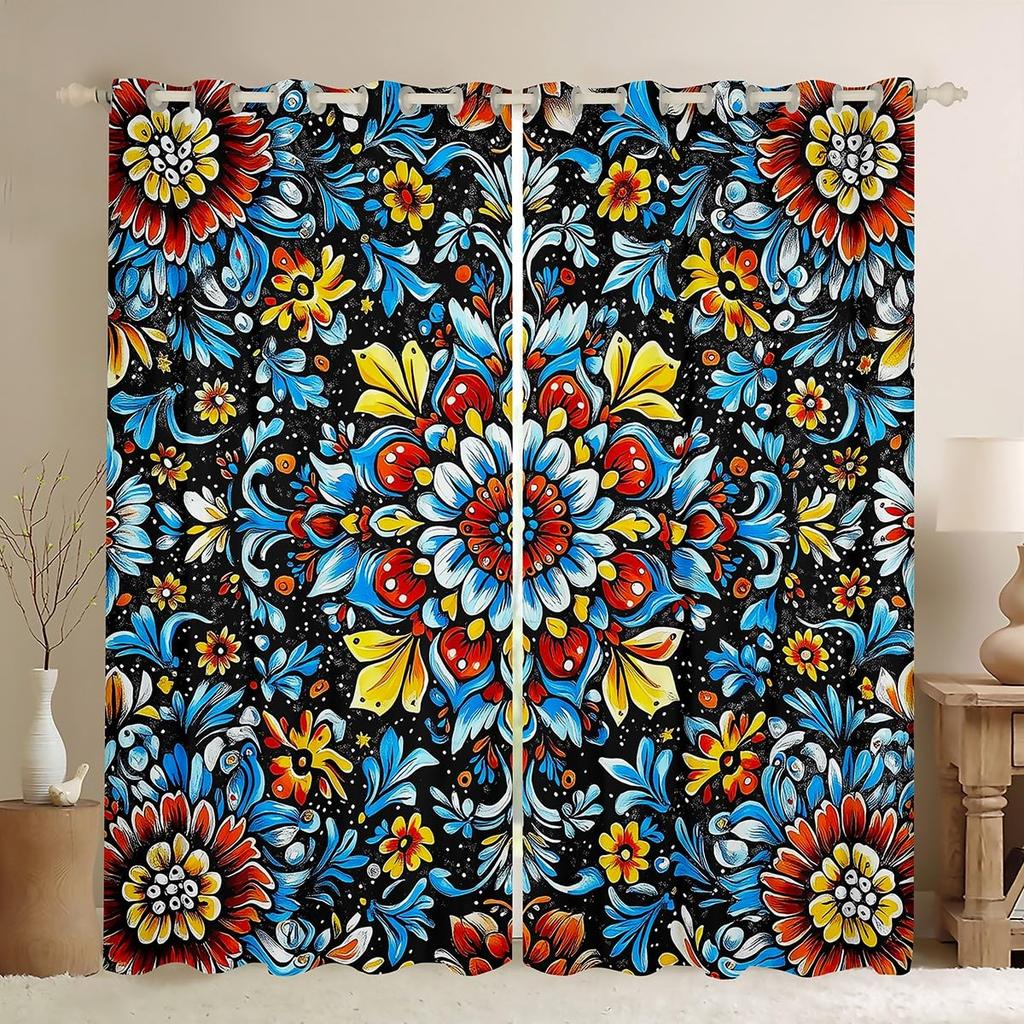 Room Darkening Mandala Curtain Vintage Tribal Exotic Floral Window Curtains Drapes Southwestern Colorful Retro Flower Bohemian Polyester Washable