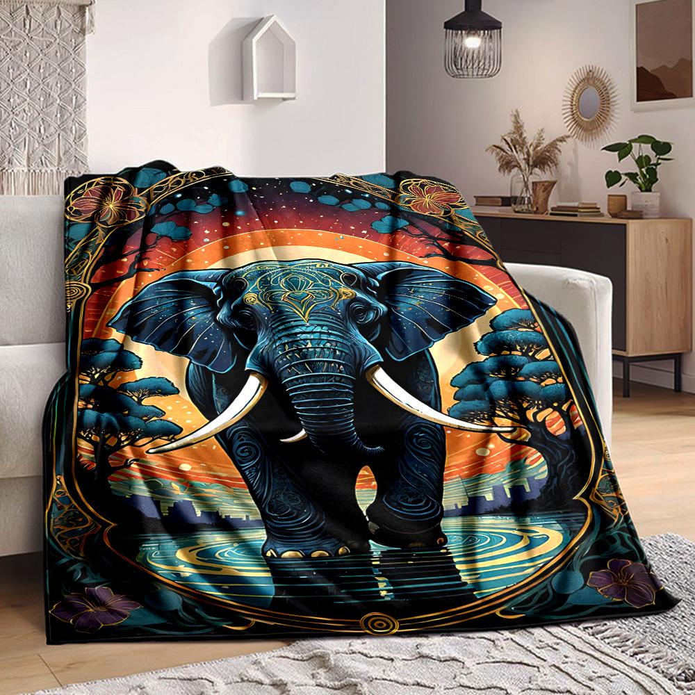 1pc Elephant Art Print Blanket Lightweight Blanket Throw Blanket For Sofa, Bed, Travel, Camping, Livingroom, Office, Couch, Chair Yy251010028