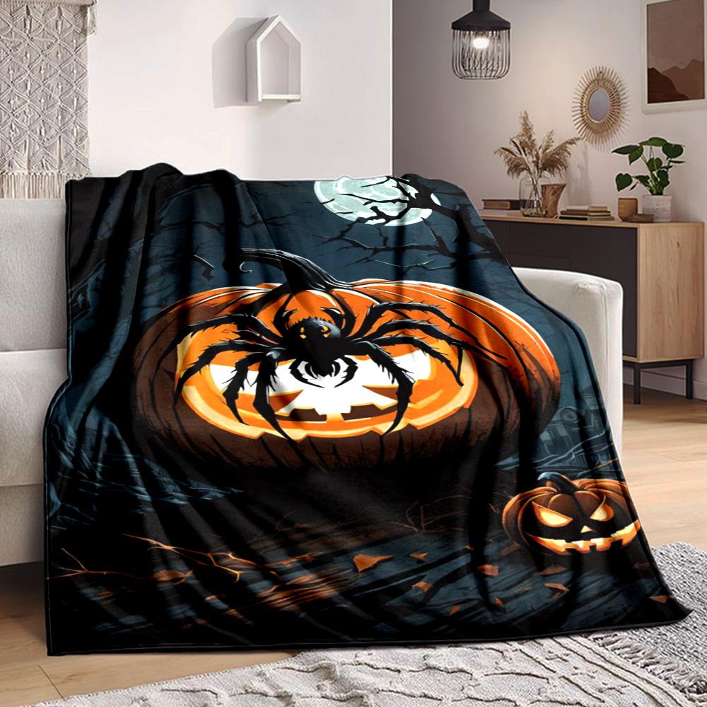 1pc Halloween Pumpkin, Spider Blanket Lightweight Flannel Blanket Throw Blanket For Sofa, Bed, Travel, Camping, Livingroom, Couch, Chair, And Bed Yy25