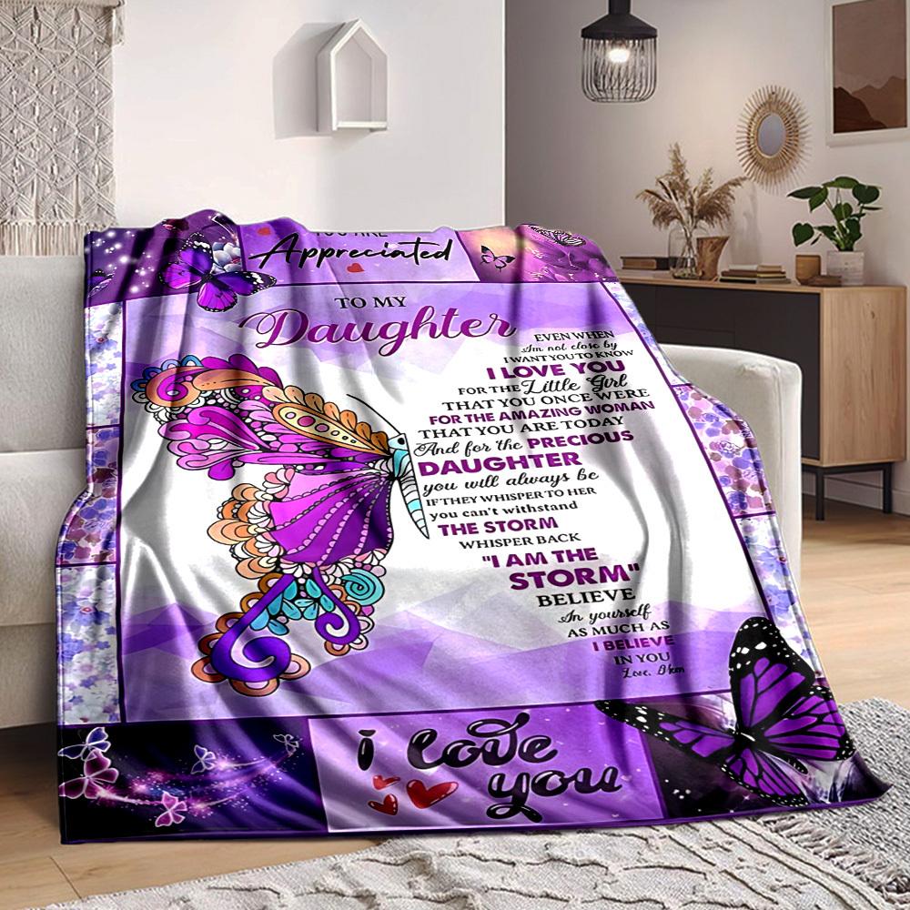 1PC Daughter Appreciation Quote Blanket, Soft Warm All-Season Throw for Sofa, Bed, Car, Office, Vibrant Colorful Design, Durable & Cozy Gift for Home