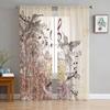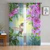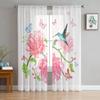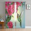 Sheer Hummingbird Pink Flower White Tulle Curtains Living Room Bedroom Decoration Transparent Chiffon Voile Window Curtain Polyester Washable Sitting