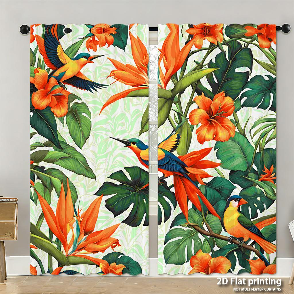 Piece Set High Definition Digital Printed Curtainstropicalfloralpatternbirdsorangegreenhome Decoration Style Curtain Made Of Polyester