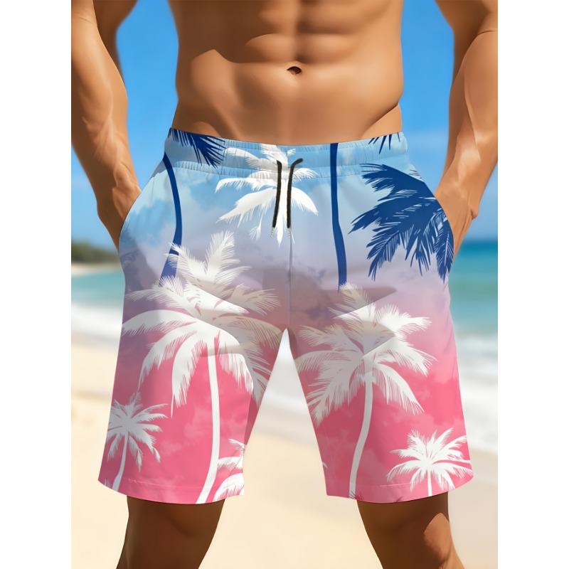 Men's 3D Printed Pink Coconut Tree Beach Pattern Quick Drying Swim Trunks - Casual Breathable Beach Shorts