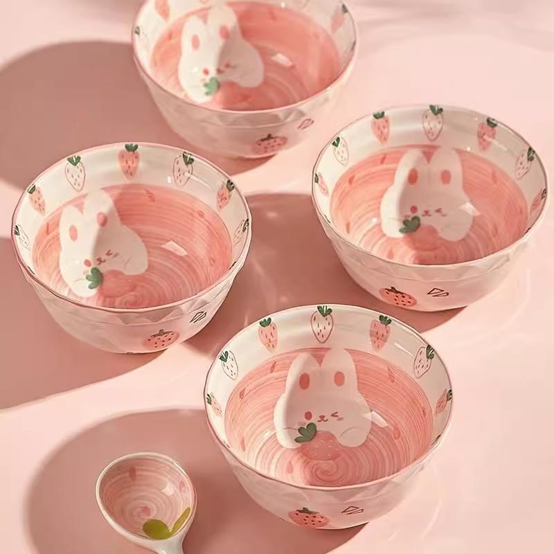 Ceramic Rice Bowl Home Eating Bowl Strawberry Rabbit Small Bowl Plate 5 Inch Tableware Cute Salad