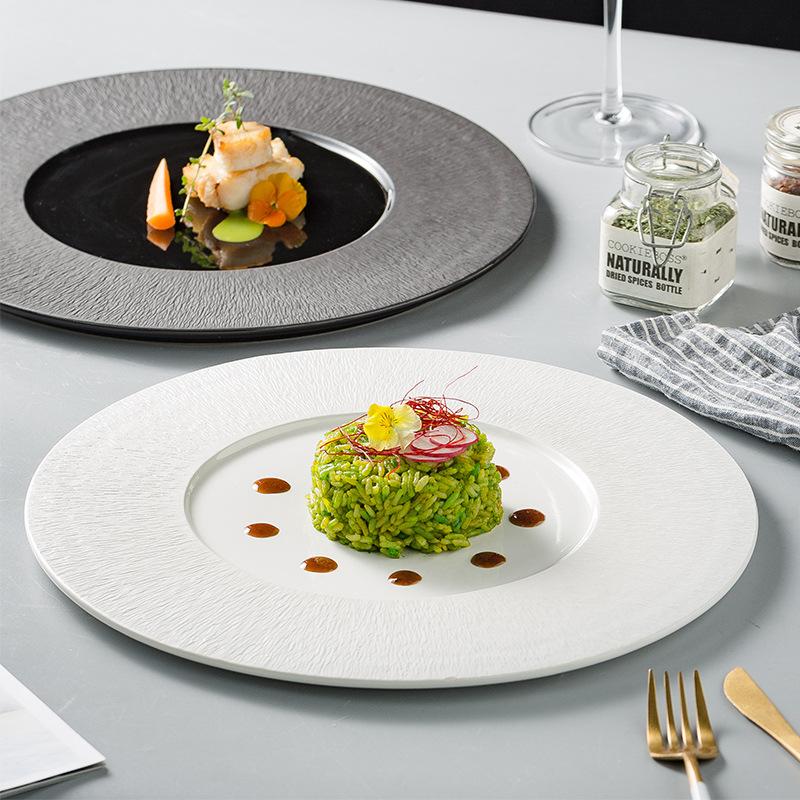 High-End Black Western Food Plate Creative Ceramic Plate Wedding Dining Plate Light Luxury Steak Plate Hotel Plate Tableware