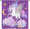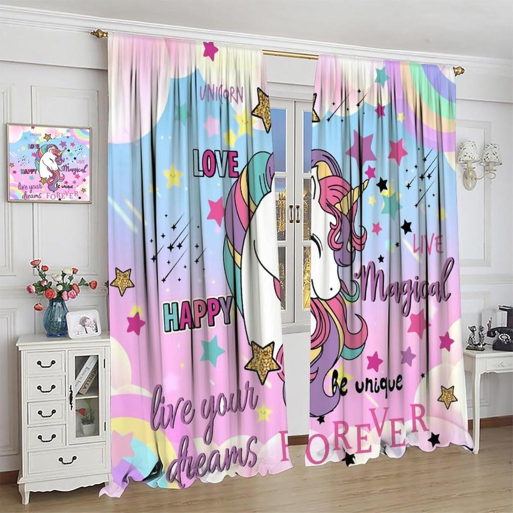 Unicorn Curtains Kids Room Colorful Cute Cartoon Rainbow Clouds Stars Print Window Treatments Drapes Curtain With Rod Pocket Polyester Perfect For