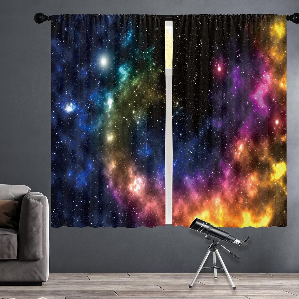 Galaxy Outer Space Curtains Colorful Nebula Window Bedroom Living Room Universe Planets Fantasy Starry Boys Teen Made Of Polyester Area Treatment