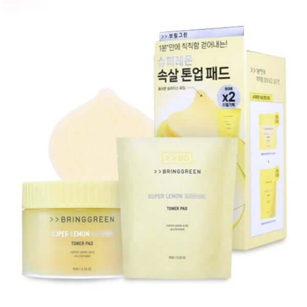 BRING GREEN Super Lemon Glutathione Toner Pad - 1pack (90pcs + Refill 90pcs)
