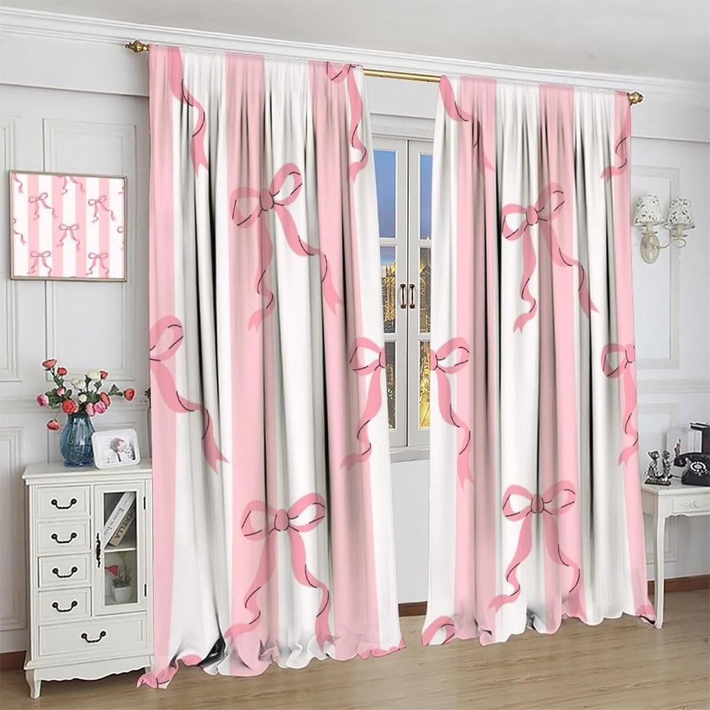 Stripe Curtains Red Ribbon Bow Stripes White Pink Background Window Treatments Insulated Drapes Panels Thermal Made Of Polyester
