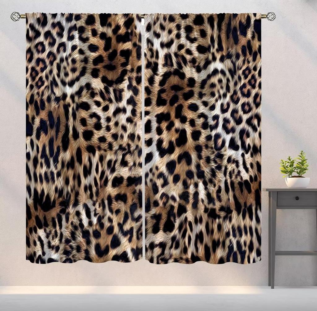 Leopard Print Curtains Brown Cheetah Wildlife Art Printed Window Drapes Bedroom Kitchen Decor Fabric Set Panel Curtain Blackout For Made Of Polyester
