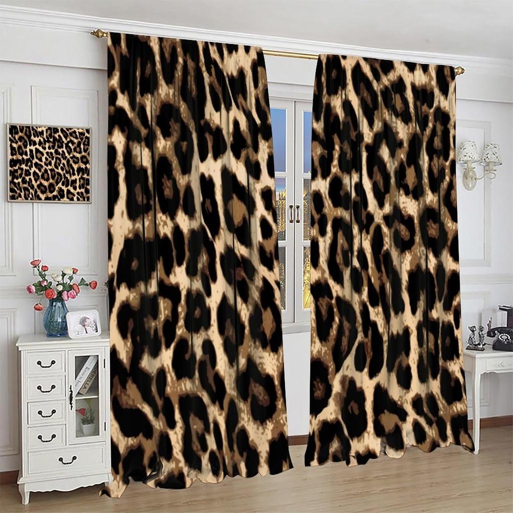 Brown Leopard Print Curtains Cheetah Safari Animal Tiger Skin Pattern Art Printed Living Room Curtain With Rod Pocket Darkening Polyester Perfect For
