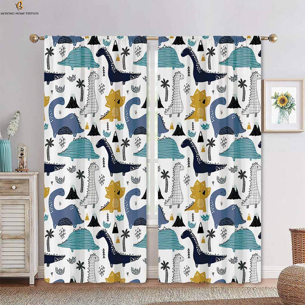 Set Of 2 Cute Cartoon Animal Dinosaur Print Curtains Bedroom Living Room Kitchen Kids Decorative Curtain With Rod Pocket Polyester Perfect For Sitting