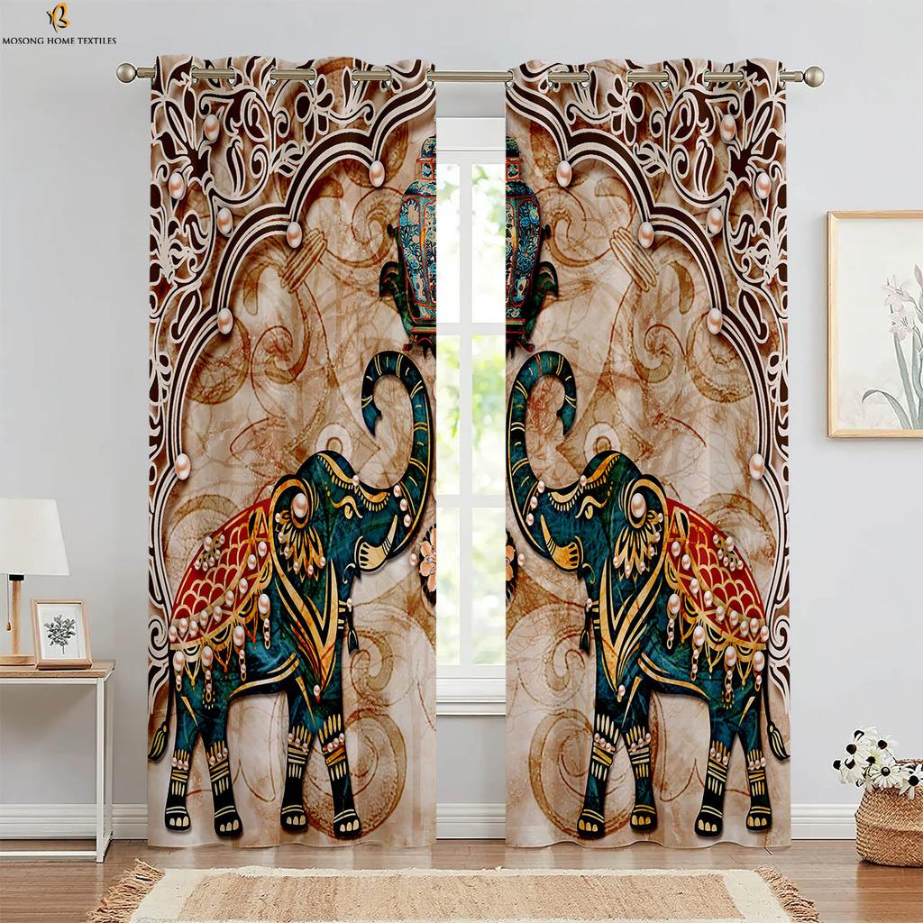 Set Of 2 European Retro Elephant Pattern Printed Curtains Polyester Bedroom Living Room Kitchen Curtain Machine Washable Ideal For Great