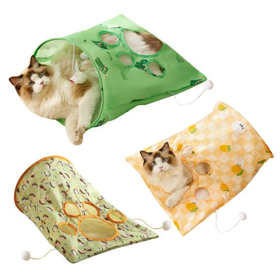 The cave-like tunnel satisfies cats' natural instincts to hide and explore, promoting energy expenditure and anxiety relief. Multiple circular holes allow paw play and owner interaction for engaging games. Lightweight and foldable, it's easy to store and portable for travel or vet visits, ensuring your cat stays entertained anywhere.