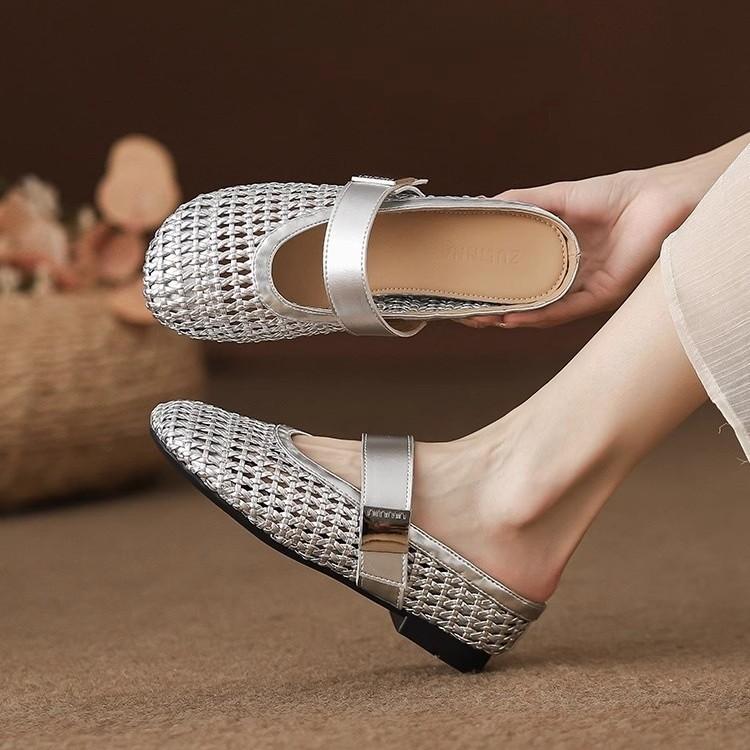 Soft Leather Version~ Hand-woven Hollow Sandals for Women's 2025 Summer New Models with Breathable Bag Head and Half Slippers for External Wear