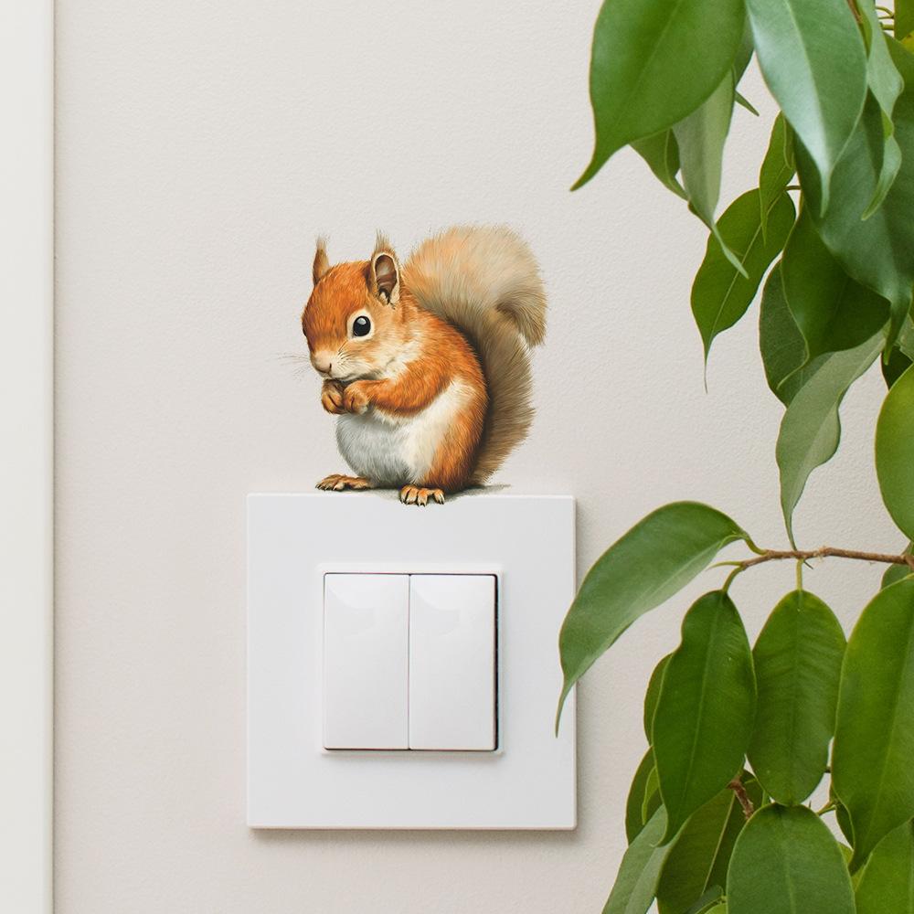 Self-adhesive Switch Stickers Cute Cartoon Squirrel for Home Wall Decor