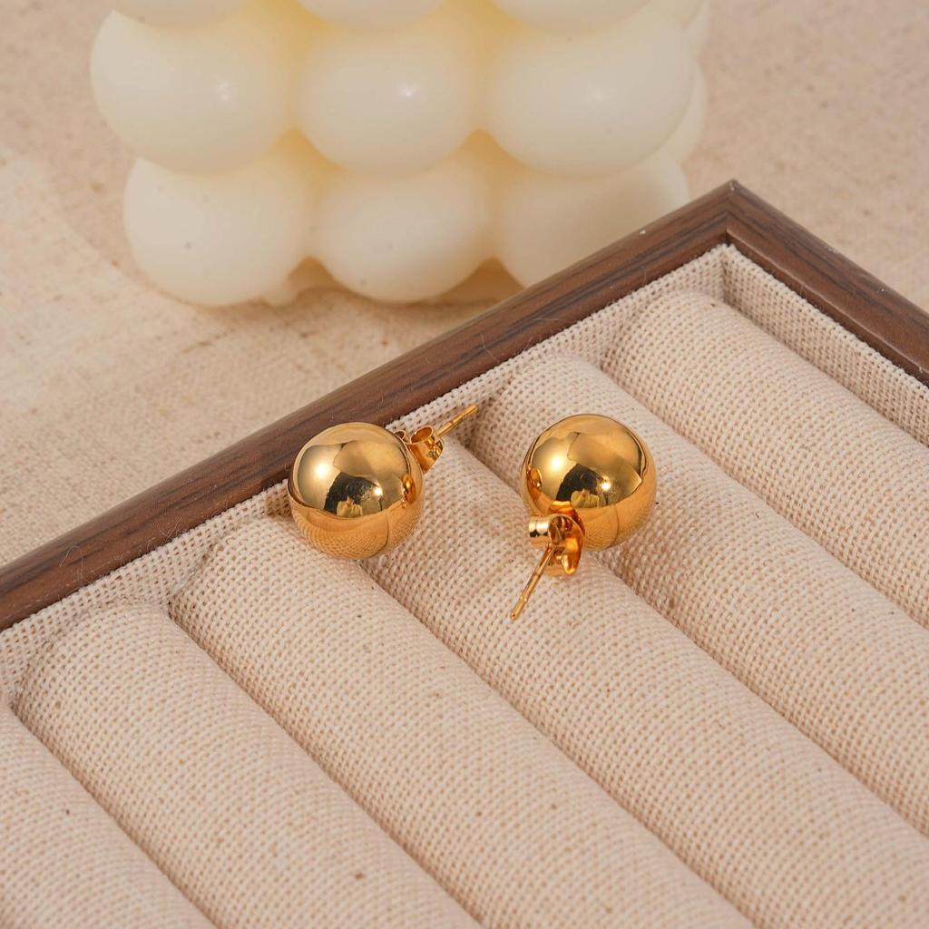 18K Gold Plated Titanium Steel Round Bead Stud Earrings for Girls