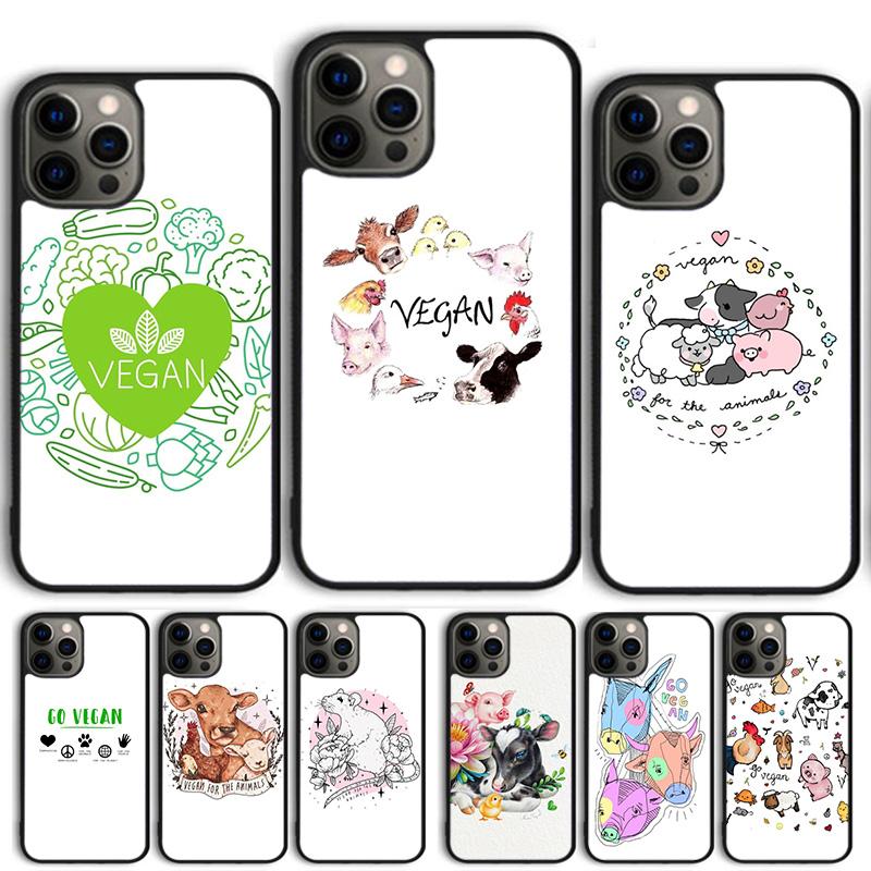 Vegan Love Animal Phone Case For iPhone 17 Air 13 12 14 15 16 Cover For Apple 14 15 16 Pro Max Plus Coque