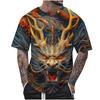 Best-selling Multi-color Retro Dragon Pattern Men's T-shirt, 3D Printed Trendy Casual Short-sleeved Round Top, Loose T-shirt