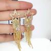2PC Women's Fashionable Rhinestone Sparkling Star Tassel Earrings Suitable for Banquet and Party Accessories