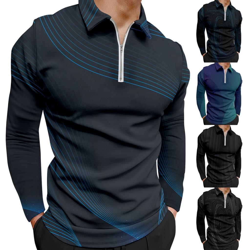 Men'S Lapel Long Sleeve Printed Casual Top Loose Sports Lapel Shirt