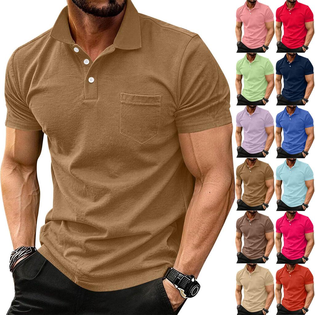 Men's Fashion Shirts Short Sleeve Casual Cotton Golf Shirts Moisture Wicking Shirt With Pocket
