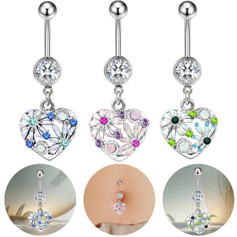 Simple Fashion Zircon Navel Ring Lady's Personalized Piercing Jewelry Heart Shaped Belly Button Ring Accessories