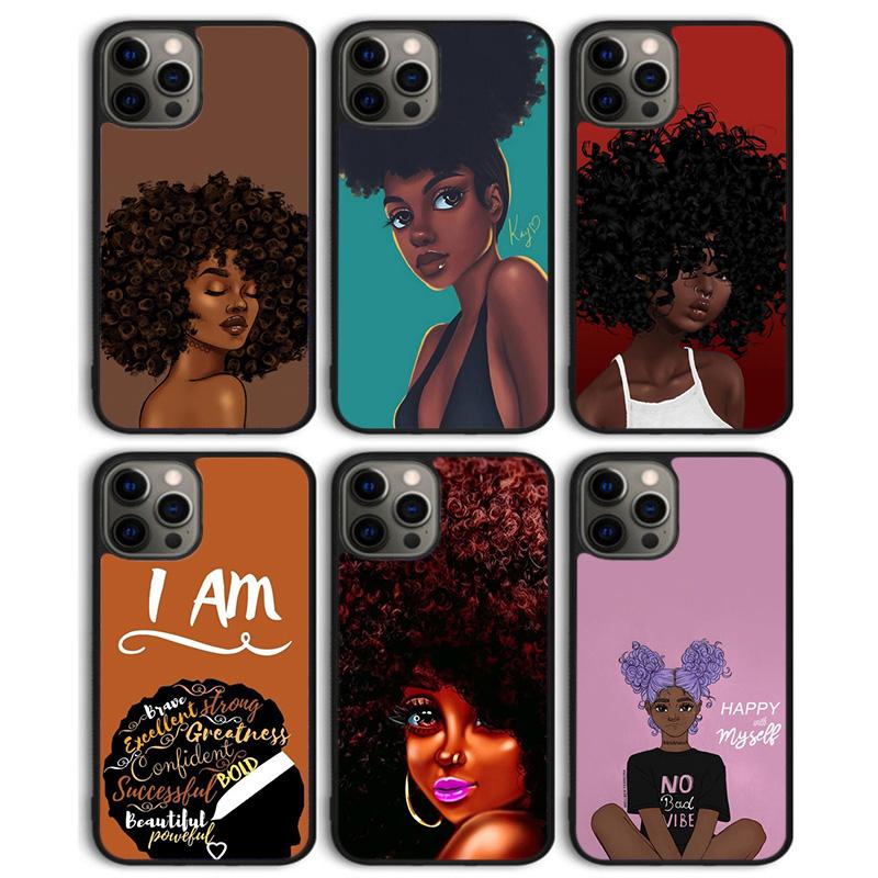 Afro Black Girl Phone Case Back Cover for iPhone 17 Air 16 15 14 13 11 12 Pro Max Plus Shell Coque