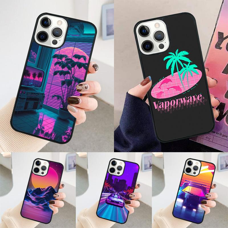 80s Retrowave Neon Palms Tree Phone Case For iPhone 17 Air 13 12 14 15 16 Cover For Apple Pro Max Plus