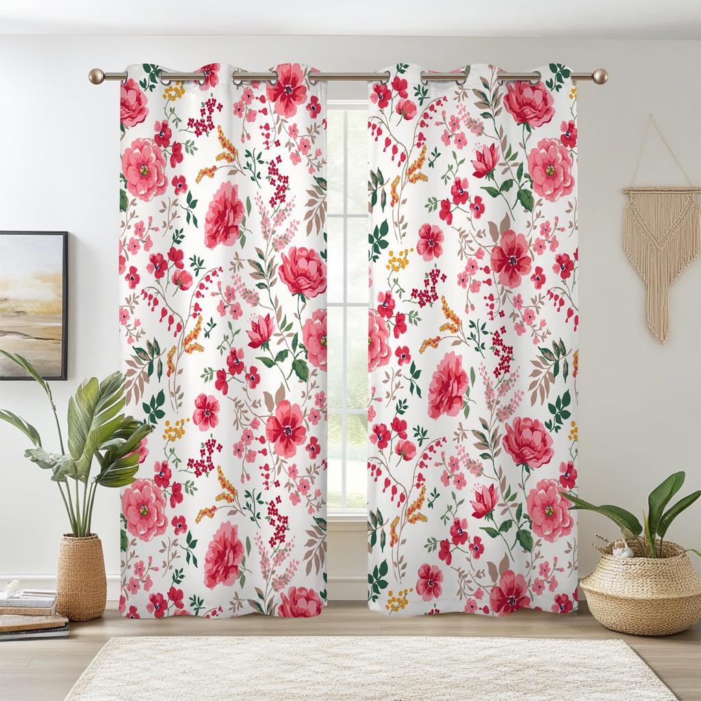 Botanical Floral Curtains Plant Peony Flowers Window Bedroom Thermal Insulated Living Room Drapes Curtain Light Blocking Polyester Ideal For