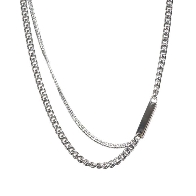 Trendy Korean Style Hip Hop Titanium Steel Double Layer Uneven Necklace for Men and Women