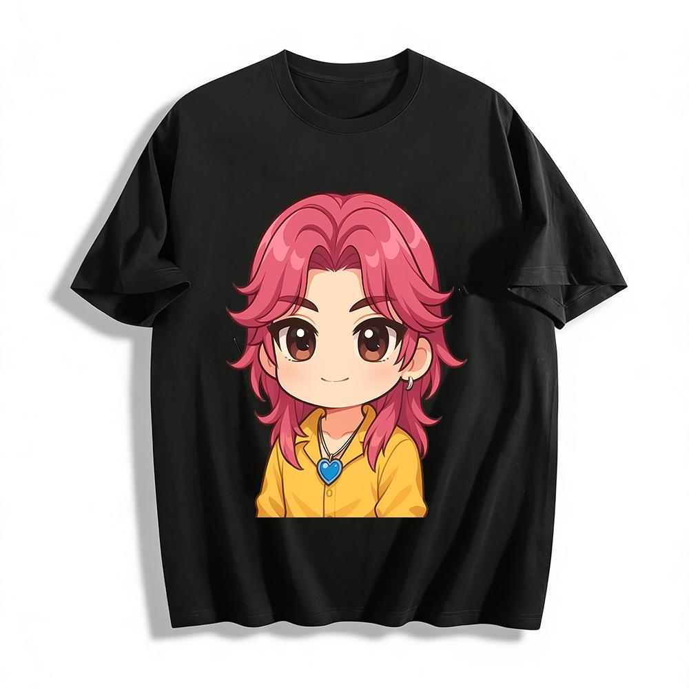 Trendy Pink-haired Cartoon Character Print Casual Top Unisex Loose Fit Daily Commute Long-sleeve T-shirt Pure Cotton T-shirt