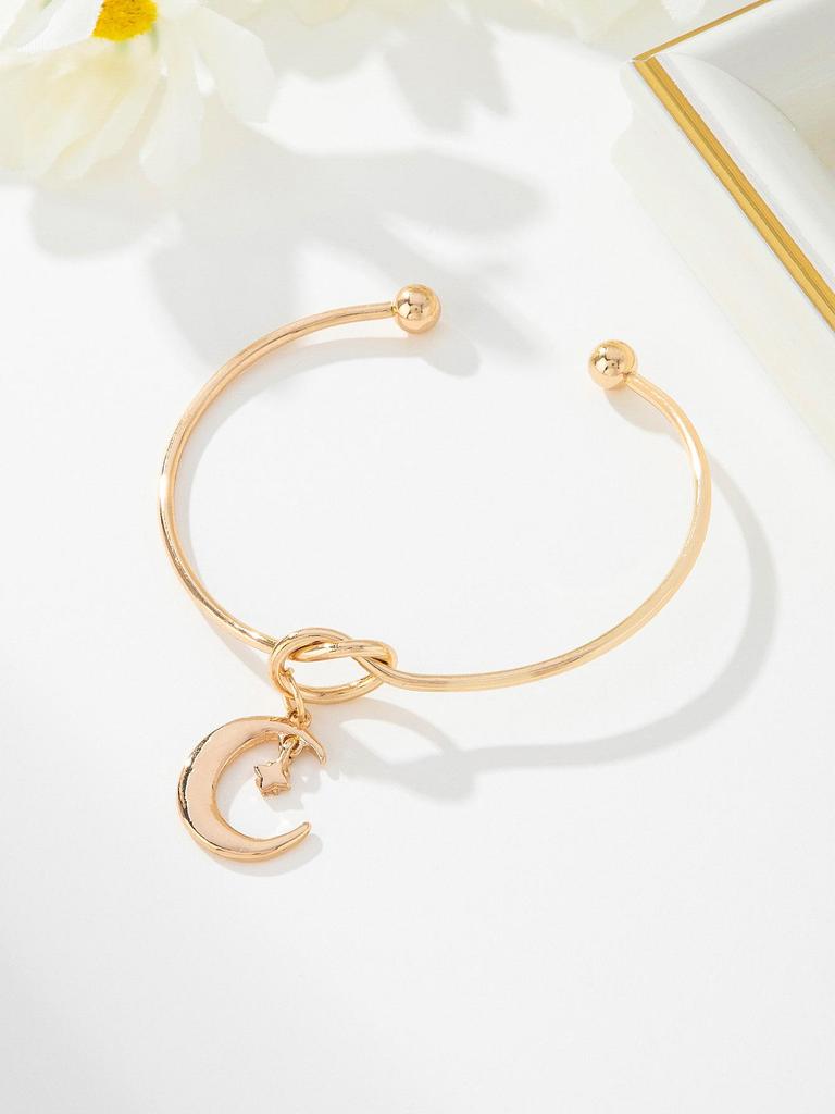 Star Moon Pendant Women's Open Bangle: European-American Knot Design